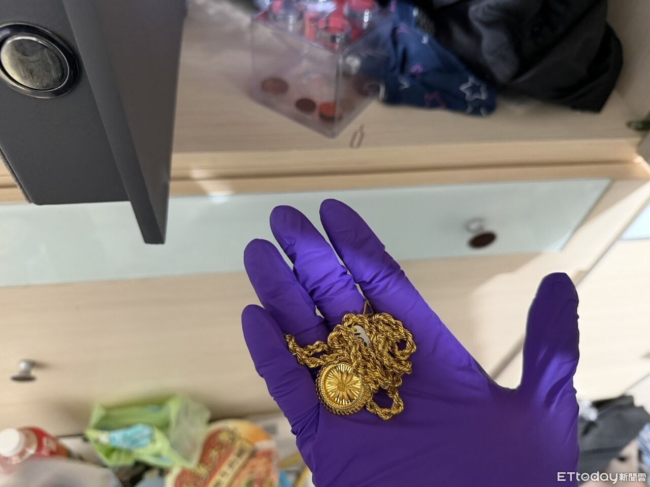 ▲桃園2男搶劫被逮稱42萬金飾弄丟了,警在接應男家中起獲金飾。(圖/記者楊熾興翻攝,下同)
