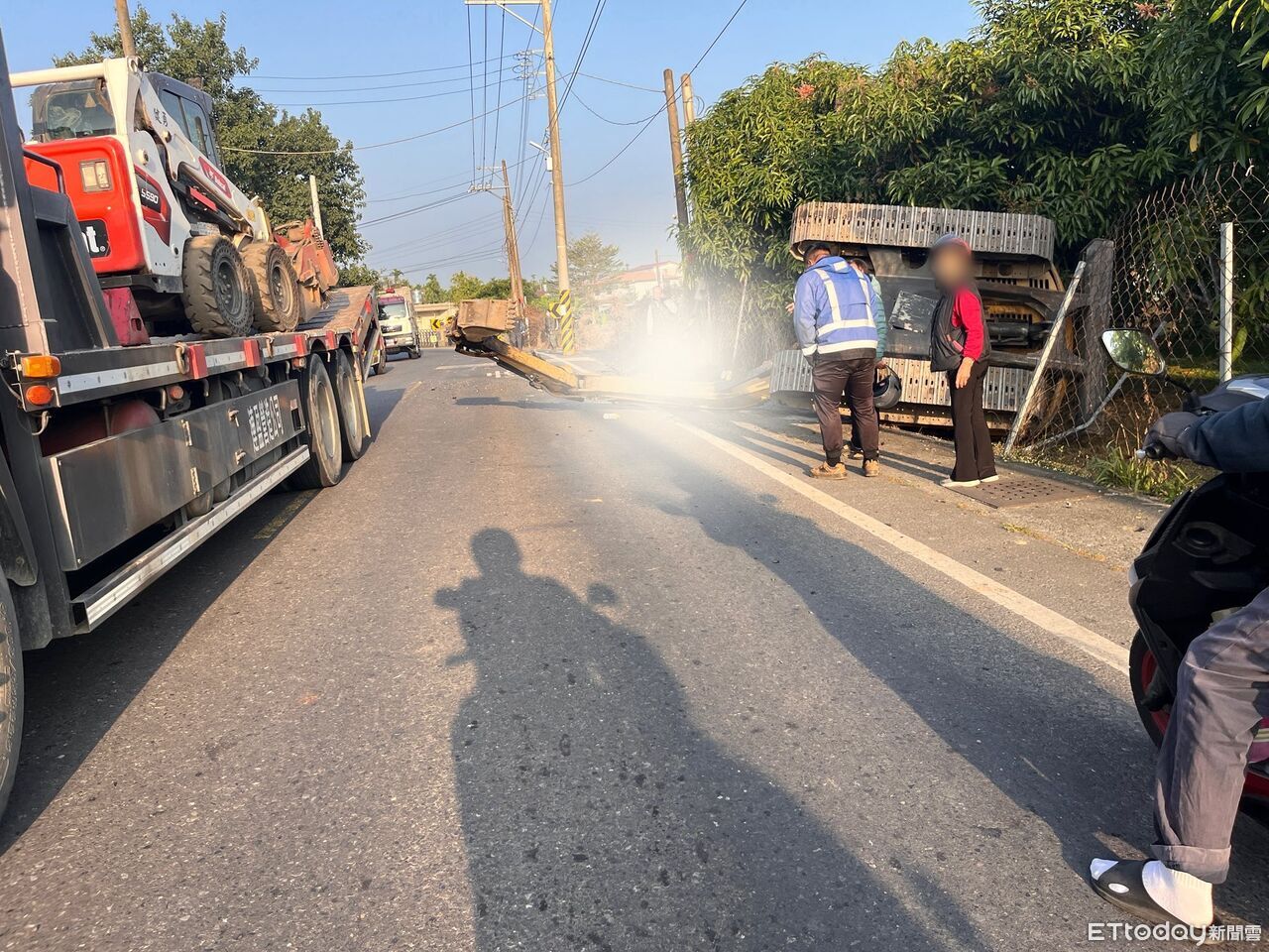 ▲屏東聯結車過彎,怪手掉下來,男性騎士遭砸重不治。(圖/魏姓網友授權提供)