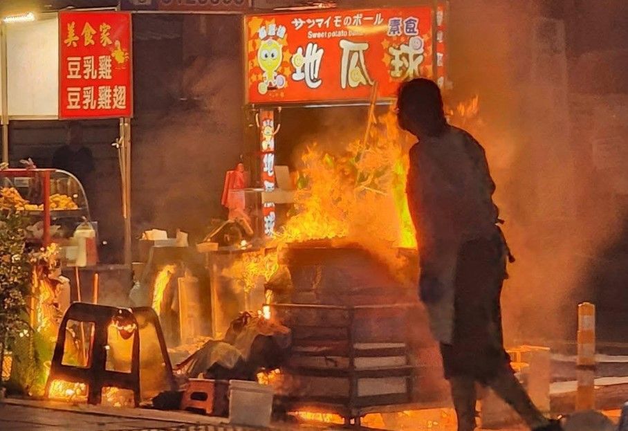▲永康夜市地瓜球攤販起火。(圖/翻攝爆料公社)