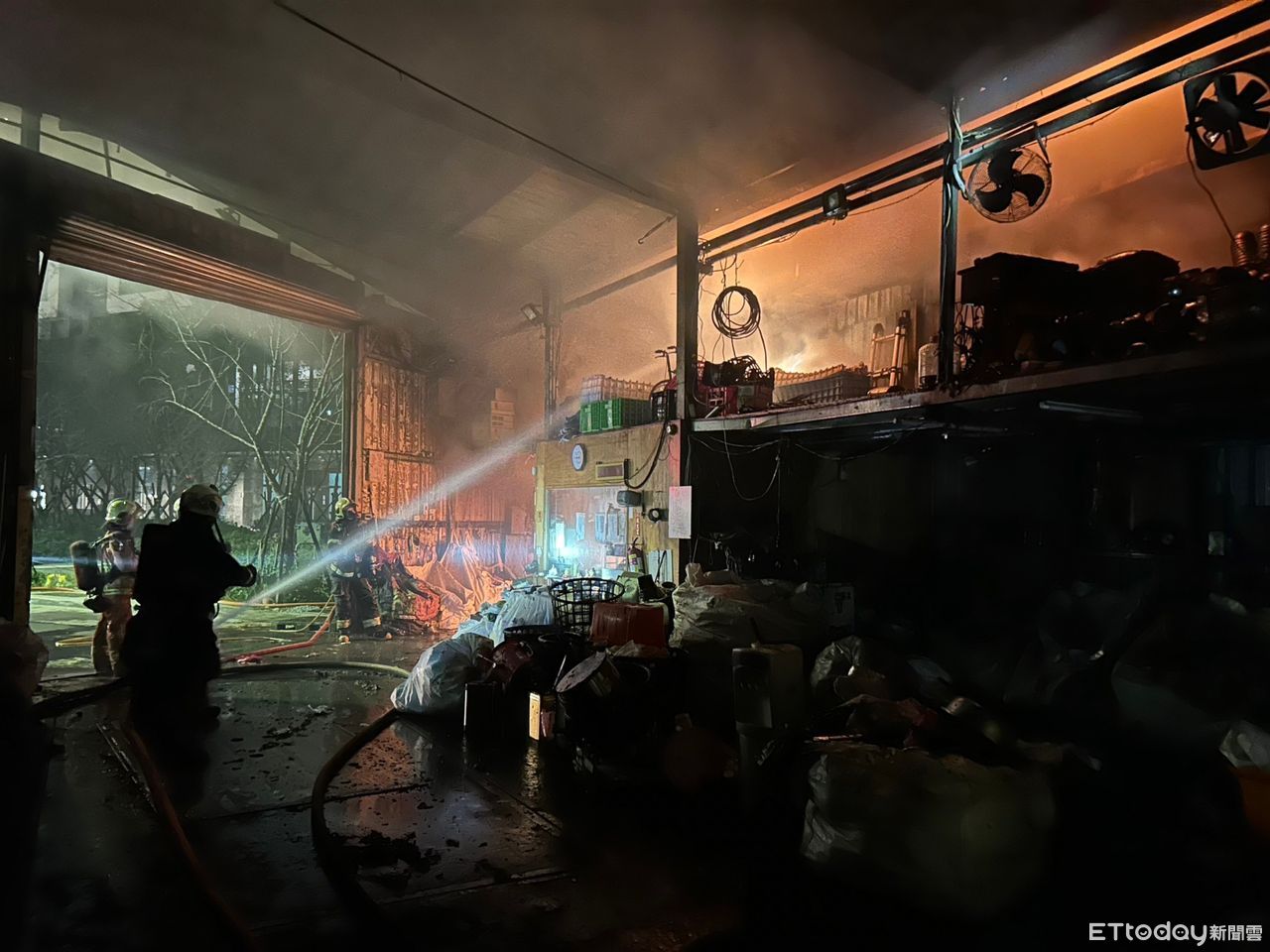 ▲新北市板橋區長江路鐵皮工廠發生大火。(圖/記者陸運陞翻攝)
