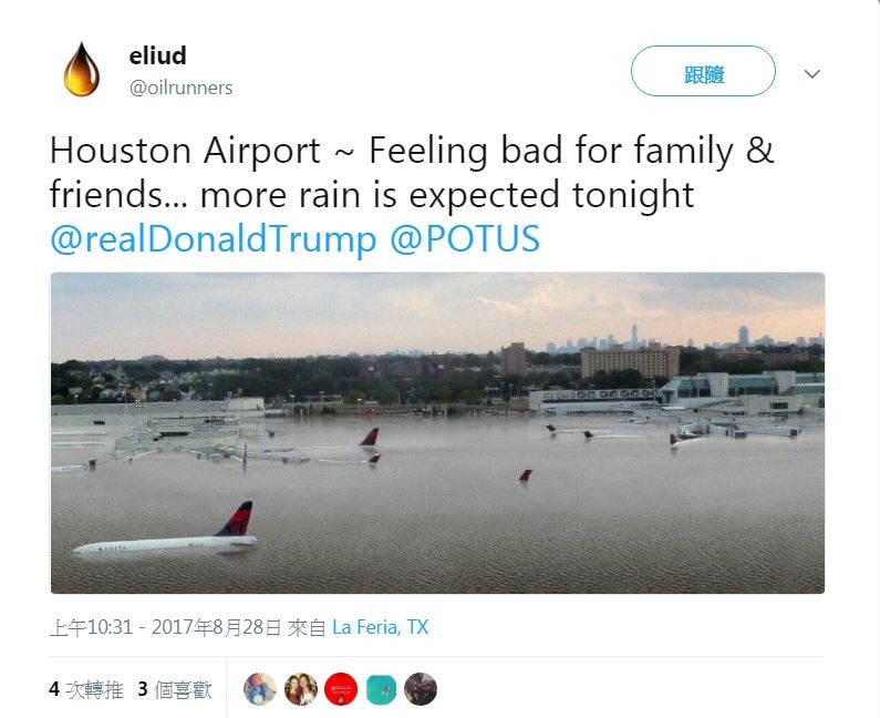 ▲ 網友惡搞休士頓洪災照片。(圖/翻攝自Twitter/oilrunners)