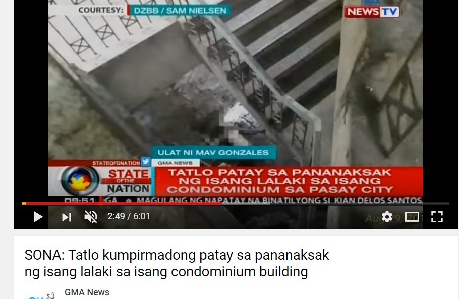 ▲女子與男友發生爭執後,從16樓被狠推下樓,摔死在地下室裡。(圖/翻攝自GMA News的YouTube)