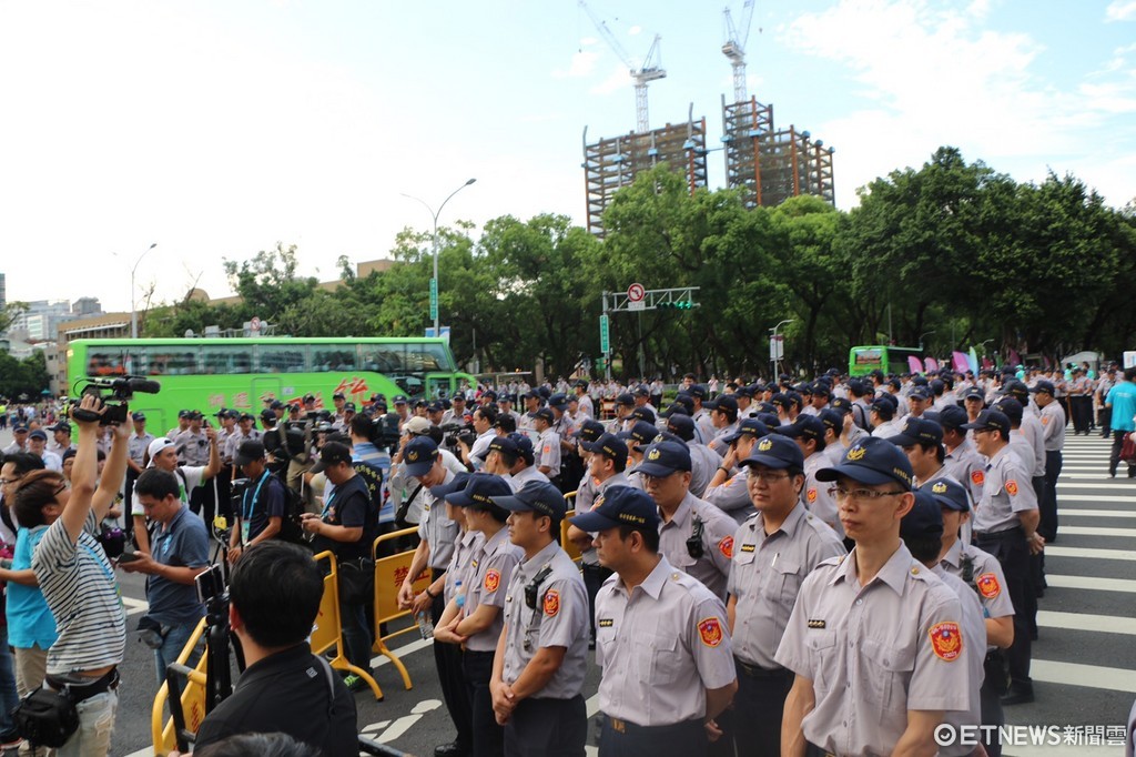 ▲警方層層人力隔絕抗議民眾。(圖/記者柳名耕攝)