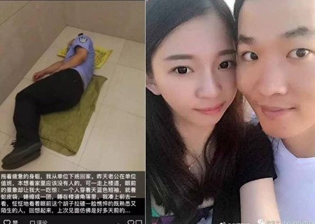 據《環球網》報導,任職於麗水市人民醫院腎內科的27歲護士顧源紅,和31歲警察丈夫蔡晶成結婚2年多,夫妻倆工作忙碌,平時很難見上一面。本月24日夫妻倆不約而同值夜班,顧源紅早上回家卻在樓梯間角落,看見穿著制服的丈夫席地而睡,背影令人心疼。