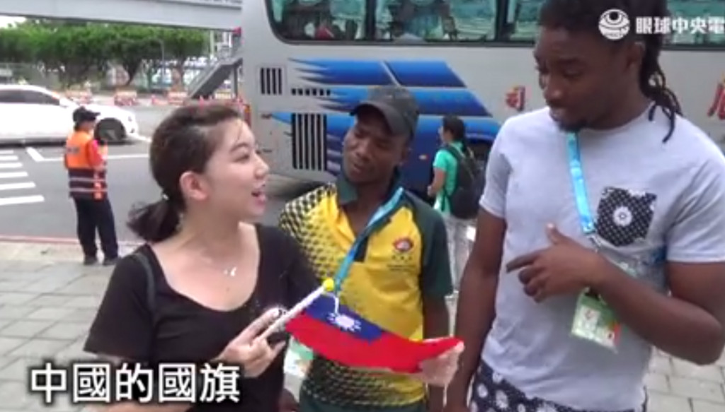 世大運剛結束不久,許多人也趁著這難得的機會,與外國選手或隨隊人員進行國民外交,介紹他們認識台灣,以惡搞中國官媒央視著稱的「眼球中央電視台」也隨機訪問了幾位世大運選手,並向他們介紹了台灣的政治現況,讓網友看了啼笑皆非。