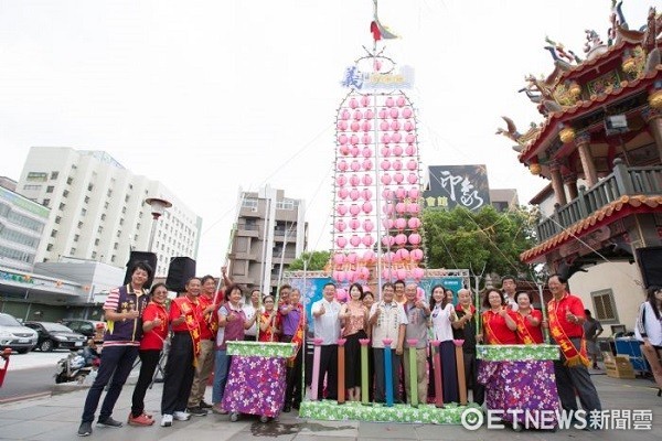▲游建華副市長等貴賓共同豎起代表團結義心的水燈柱。(圖/桃園市政府客家事務局提供)