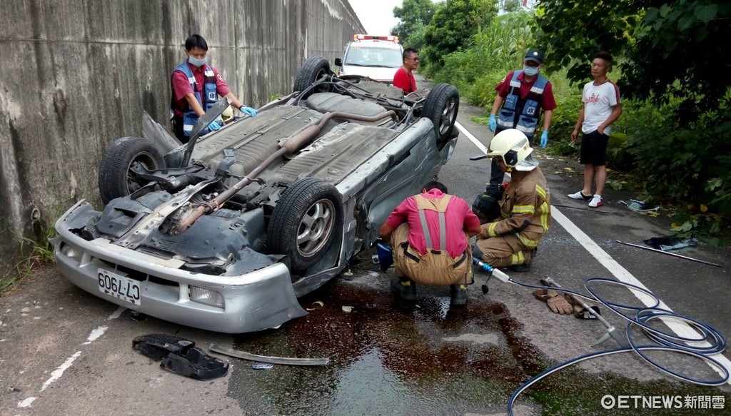 警消獲報趕到現場,發現車輛四輪朝天、嚴重變形,鄭男卡在駕駛座內,頭顱破裂已經死亡;黑色汽車則停在快速道路上,引擎蓋擠壓變形,楊男和徐姓女乘客受輕微擦挫傷。警方根據撞擊力道研判車速應該不慢,但是否超速仍要進一步釐清。