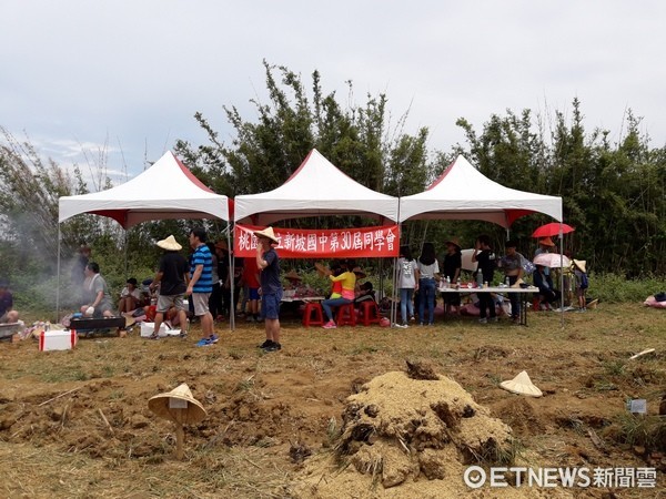 ▲親朋好友總動員,參加「農家樂焢窯」。▼新坡國中第30屆同學會,就在2017桃園地景藝術節農家樂焢窯。(圖/記者楊淑媛攝)