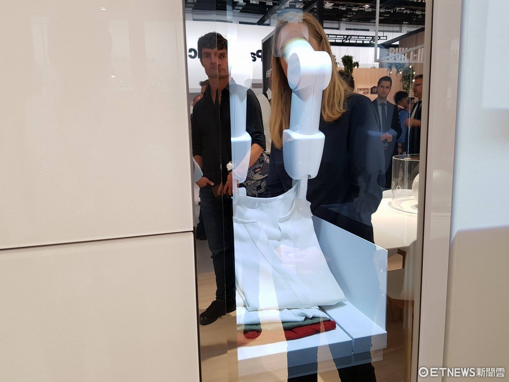 Laundroid 與其說它是智慧衣櫥,不如說它是崁入式洗衣機,它需要使用的空間雖然大,但是相對一般洗衣機來說更為優雅,而且相較於 IFA 2016,工作人員展示到一半還會當機,IFA 2017 已經可以看到這項產品運作起來相當順暢,雜亂的衣服丟進去之後,會自動幫你洗乾淨,並且折好。