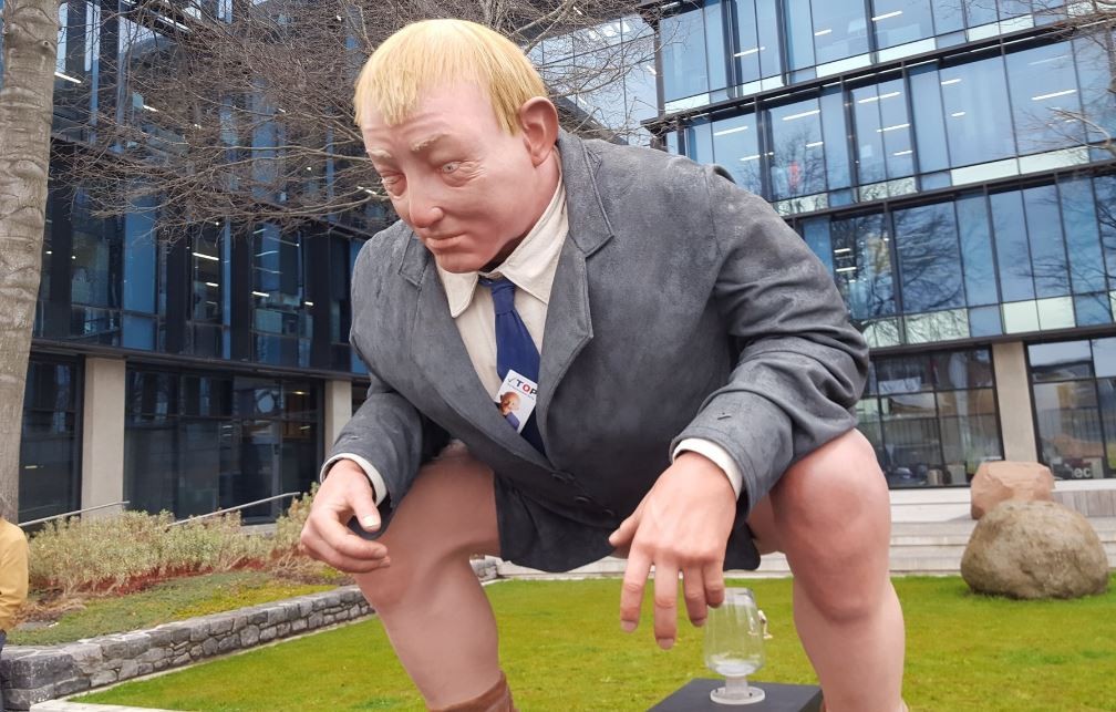 ▲ 紐西蘭藝術家為了抗議新政策,製作了一座環境部長光屁股的雕像。(圖/翻攝自推特/@ConanYoung1)