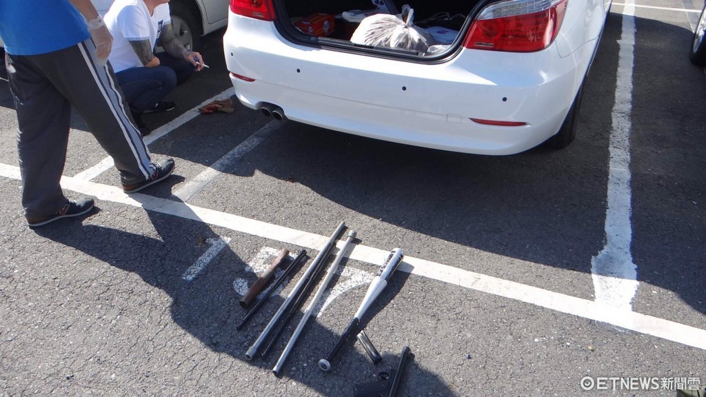▲警方在涉案人小客車內起獲逞兇鬥狠的棍棒。(圖/記者林悅翻攝)