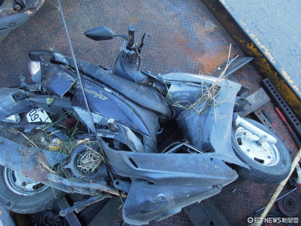 ▲死者洪婦機車嚴重變形。(圖/記者林悅翻攝)