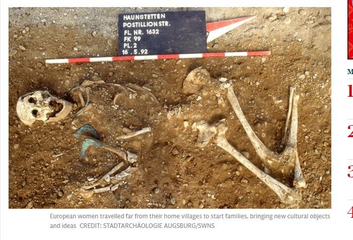 德國斯托克姆(Philipp Stockhammer)教授率領團隊,在奧格斯堡(Augsburg)檢驗84具石器時代末期至青銅時代初期(約西元前2500至1650年間)的遺體,發現約2/3的女性都來自外地,反而男性多數留在出生地。他表示,「女主外、男主內」的現象維持超過800年,打破現代人的刻板印象。