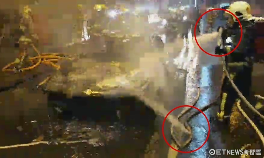 不過,該意外也讓「破洞消防水帶」曝光,根據警消提供的影片顯示,消防隊員滅火時,放在地面上的管線從破洞中不斷噴水,一名消防員經過順手拾起,將破洞對準引擎蓋噴水。