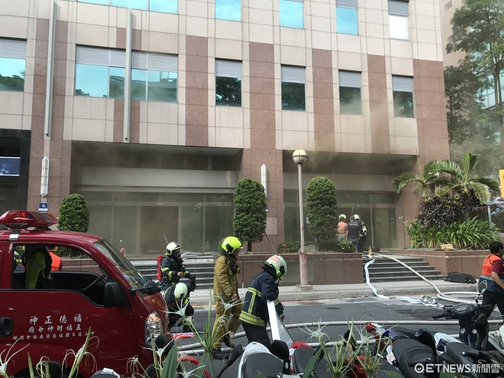 ▲消防人員到場後迅速撲滅火勢,並將濃煙排出大樓。(圖/記者柳名耕翻攝(下同))記者柳名耕/台北報導台北市消防局勤務中心7日下午15點30分時許接獲報案,民眾指出在內湖區瑞光路1處商業大樓冒出濃煙,消防局派出水箱車10量、雲梯車2輛、特種車3輛以及45名消防人員到場灌救。消防局指出,現場是該棟大樓1樓施工不慎,導致施工用的泡棉起火燃燒,到場後立即迅速撲滅,無人傷亡,目前仍在進行排煙。