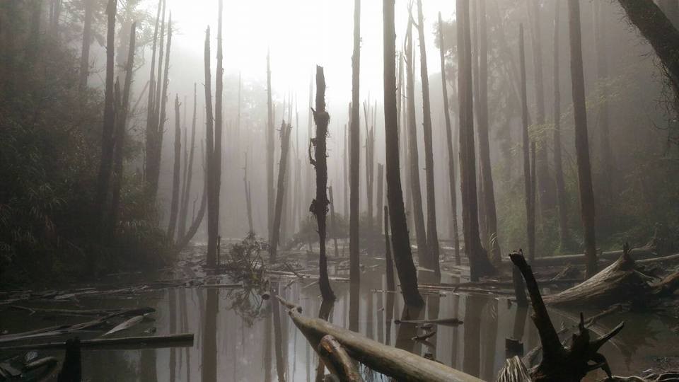 雲霧繚繞,朽木交錯林立水中,倒影迷幻,和背後的森林構成一幅空靈美景,也是忘憂森林的名稱由來,要進入位於溪頭的這片海拔2000公尺秘境,關卡重重。一路上只能走2米寬的陡峭山路,短短5分鐘車程,從路口海拔1770公尺,直接飆上2000公尺,沿途必經4大陡坡、11處彎道,一般低底盤轎車根本難以到達,終點也無處可停車。