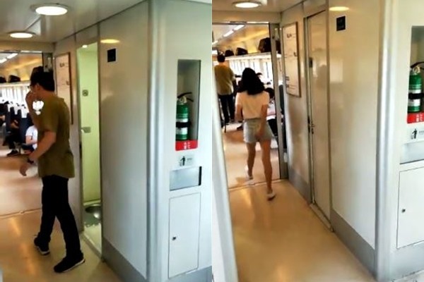 ▼一對男女一前一後走出高鐵廁所的影片,全被網友拍下。(影片/取自youtube)