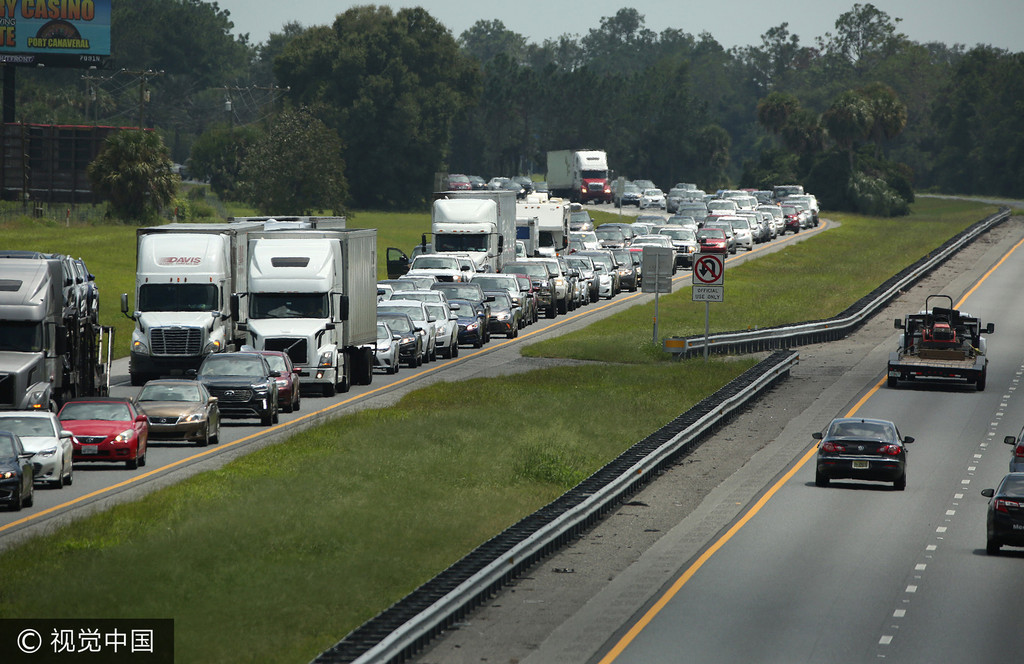 ▲最強颶風艾瑪將登陸佛州,560萬人預先撤離,公路塞爆。(圖/CFP)