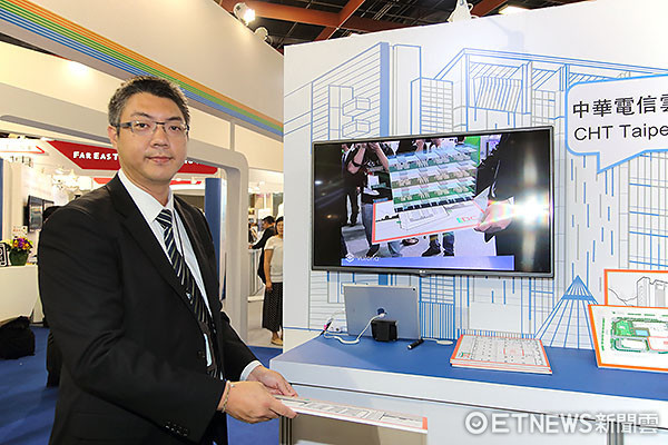 ▲ 中華電信透過 AR 擴增實境方式,帶領參觀者在展區現場就能瞭解位於板橋的 IDC(Internet Data Center)雲端資料中心。(圖/記者鄭惟仁攝)