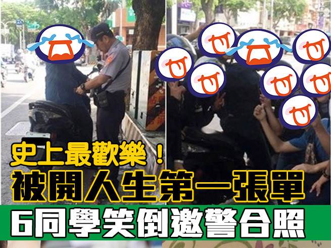 一名葉姓網友和一群好友騎車出門,但其中一位朋友因違規轉彎被警察開單,不過一群人反而開心肯定警察開單抓得好「有錯就罰,我們很認同」,還與警員及被罰同學合照一張,超歡樂氣氛至少感染1.5萬網友,態度被推爆。事後,原po告訴當事者有po「爆廢公社」,但後來又補一句「東森新聞台也有」,讓原以為只有「爆料公社」登自己糗照的同學,瞬間改飆粗口,笑翻網友。