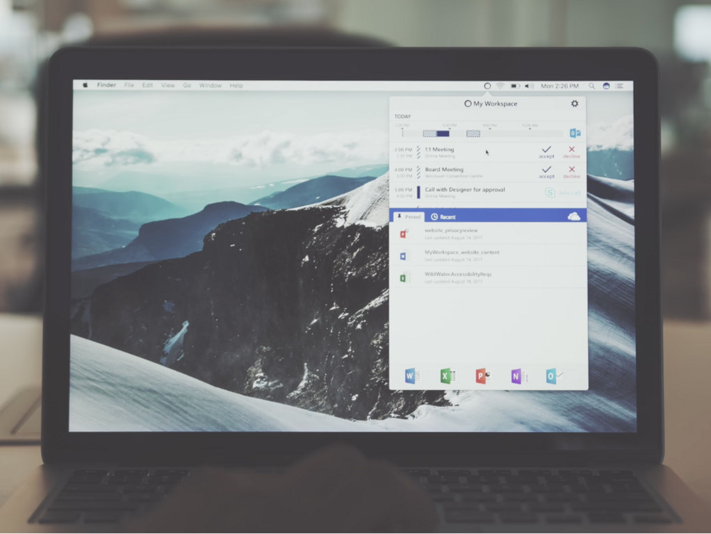 或許是因 Apple 發表會在即,微軟在今(9/12)日也針對 macOS 作業系統,推出一款 Office 365 專用的工具欄位程式《My Workspace》。不僅可快速開啟Office 相關軟體或檔案,進行無縫文書處理之餘,也整合日曆與 Skype 通話,順便幫你顧好大小事的概念?