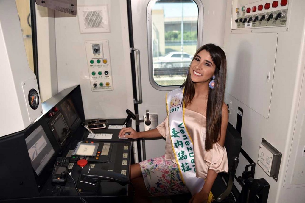 參加全球旅遊皇后選拔的46國佳麗,12日來到桃園捷運公司參觀,桃捷特別安排各國佳麗參觀電聯車及行控中心,佳麗們對此次難得的參訪經驗留下深刻的印象,並盛讚機場捷運是機場聯外交通運具的第一首選。