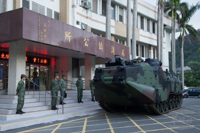 因應泰利颱風來襲可能對宜蘭地區造成影響,國軍第三作戰區宜蘭災防區12日已完成災防整備,派遣AAV7兩棲突擊車於下午4時進駐蘇澳鎮公所,隨時投入災害救援。
