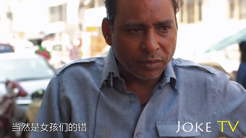Joke在影片開頭提到,在印度每3分鐘就有一起針對女性的暴力事件發生,每22分鐘就有一起性侵案發生,甚至連首都新德里都被喻為「性侵之都」,因此好奇當地居民對於性侵案的看法,沒想到許多男人的答案都讓人瞠目結舌。