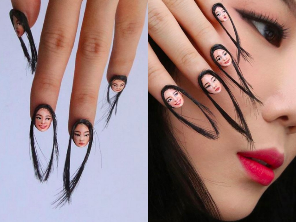 ▲這個「人頭」指甲彩繪,讓人越看越毛⋯⋯。(圖/翻攝自designdain Instagram,下同)