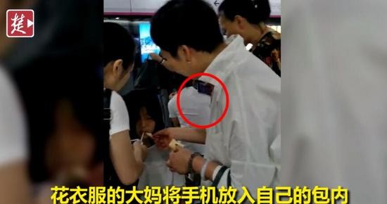 ▲歐巴桑趁亂在後面偷手機。(圖/楚天都市報)