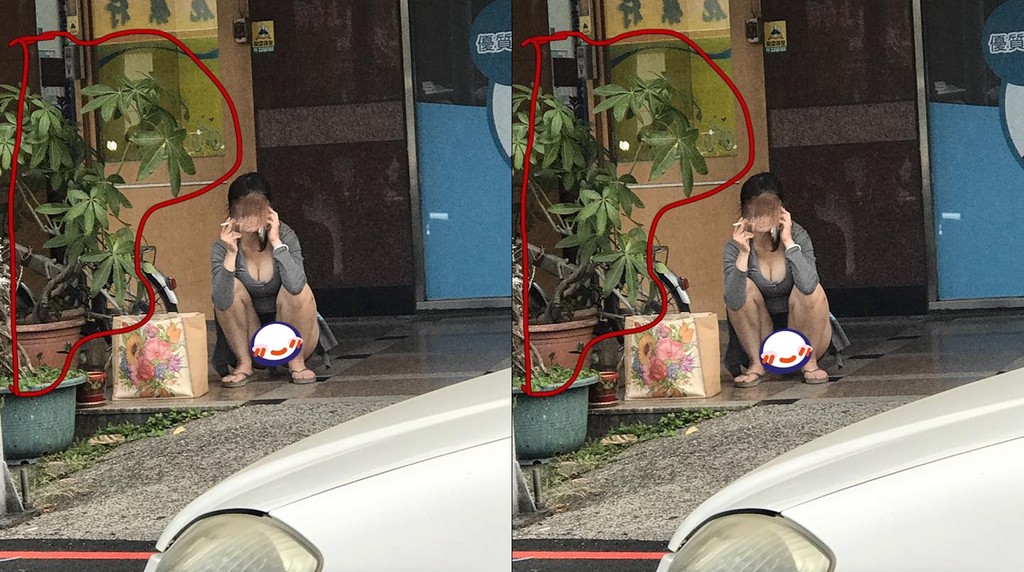 優質的正妹人人愛看,有時在路邊意外捕捉到美麗風景,更讓人忍不住多瞧幾眼。就有網友拍下一張特殊照片,影中正妹姿勢奔放、M字腿蹲地,一手拿手機一手拿菸,儘管周遭遮蔽物不少,傲人的美胸和事業線超吸睛!