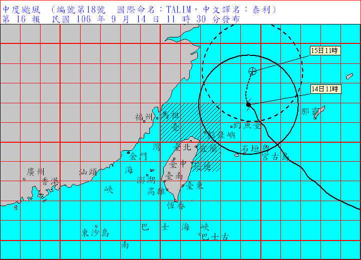 氣象局持續發布泰利海上颱風警報,今(14)日上午11時,泰利中心位置來到台北東北方約360公里海面上,基隆富貴角、馬祖已測得6米浪高,宜蘭蘇澳也有4米浪高。交通部航港局統計,受颱風影響,14日有14航線,37班次停航。