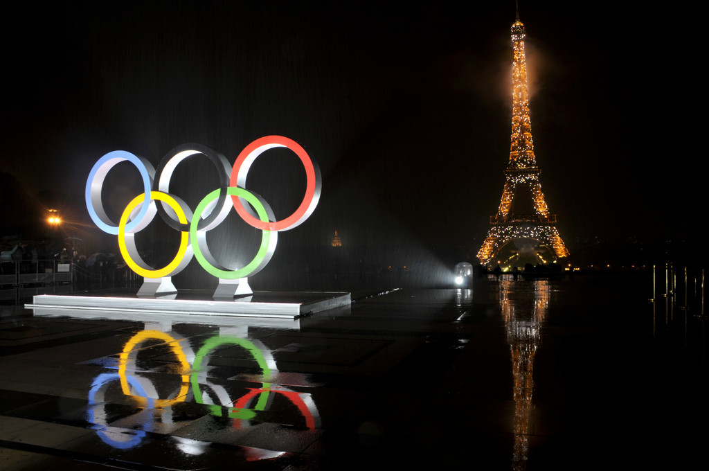 ▲巴黎正式成為2024年奧運主辦城市後,跟艾菲爾鐵塔遙遙相望的特羅卡德廣場上,亮起了奧運五環標誌。(圖/達志影像/美聯社)