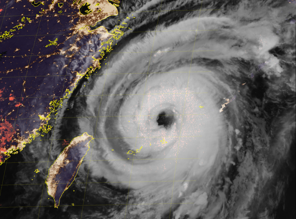 ▲泰利颱風為宮古島帶來驚人風雨,其中2艘入港避風的台灣漁船纜繩斷裂,其中1艘已經沉沒。(圖/國家災害防救科技中心)