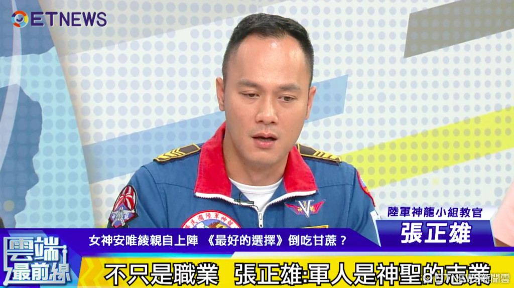 張正雄說,軍人對他而言是神聖的志業,不僅可以為國家,對自己也是一種挑戰,工作歸工作,還是有很多時間可以陪家人,在訓練的時候真的很累,但如果撐過這一段,「回憶最多的就是在最累的時候」,不管是軍人或不是一般民眾,都希望能夠支持《最好的選擇》。