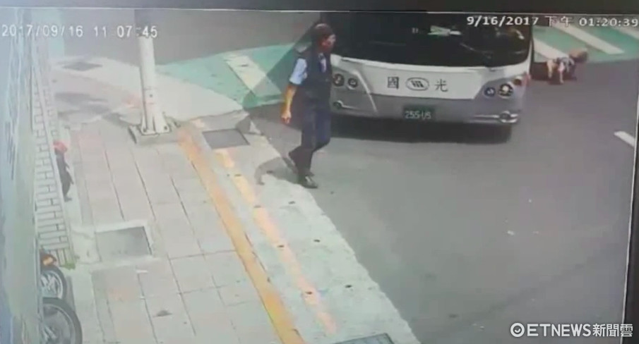▲婦人過馬路被國光客運輾過。(圖/記者張曼蘋翻攝)