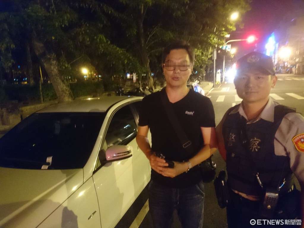 ▲台南市警二分局警備隊隊長林盟爵、警員王晙頲,順利將車鑰匙物歸原主,令李教授等人讚嘆不可思議。(圖/記者林悅翻攝)