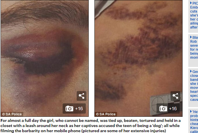 澳洲南澳大利亞州首府阿得雷德(Adelaide)發生一起虐待事件,一名19歲保母遭到2對夫婦綑綁18小時,她頸部被繫上狗鍊,還被逼吃狗食,甚至被逼迫喝下漂白水、吸食安非他命,最終被警方順利救出,但造成她極大陰影,常做惡夢睡不著。