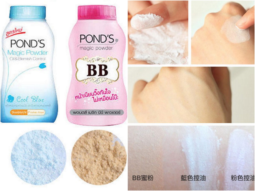 POND’S針對泰國膚質推出的蜜粉,總共推出藍色、粉紅BB、粉紅3種款式,藍色款是白色粉末,可以為肌膚提亮控油;粉紅色瓶身印有BB字樣,則是膚色粉末,帶有微微珠光,適合健康膚色或是裸妝使用;粉紅色則是粉紅粉末,可以讓肌膚氣色提升,適合冷色調肌膚使用。