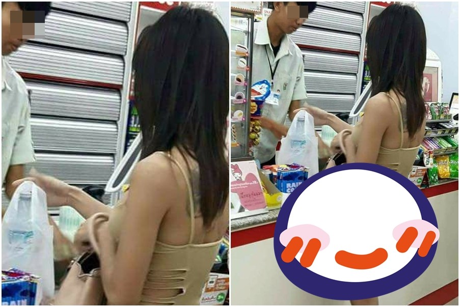 根據《泰國頭條新聞》微博,照片中一名女子站在便利商店收銀台前準備結帳,女子身穿超級暴露肉色連身裙,裙子猶如「洞洞裝」,半顆屁股都露了出來。