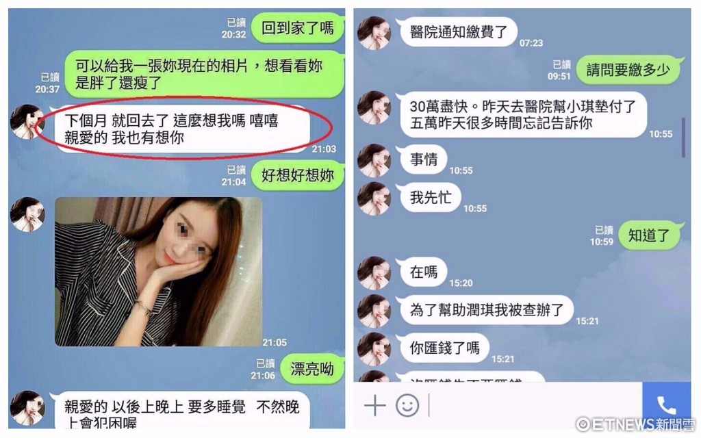 警方指出,王男(40歲)日前在交友網站上認識1名韓籍華裔的正妹「潤琪」,2人在通訊軟體上聊得相當開心,「潤琪」每天都向王男打招呼,甚至還提及「我下個月就回去了 這麼想我嗎 嘻嘻 親愛的 我也有想你」等語,讓王男相當期待。