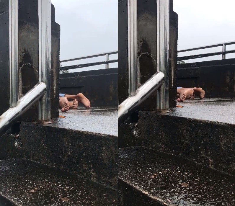 泰國羅勇府汪佔縣(อ.วังจันทร์ จ.ระยอง)警局近日接獲一起報案電話,原來是一對年約20歲的小情侶在光天化日之下,不顧路人感受,在某個國小附近的天橋上做起愛做的事。由於「激戰」時正在下雨,雨聲遮蓋住了路人走上天橋的腳步聲,一名29歲男子上天橋後看到這一幕超尷尬,並將小情侶的親密過程都錄了下來。