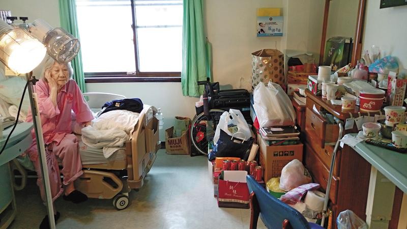 本刊直擊老奶奶住的單人病房,簡直成了私人套房,四處堆放生活起居各項用品,廁所打掃得相當乾淨,盥洗用具一應俱全,床邊的大窗戶可以遠眺山景,床邊還有一組暖爐燈,她說,天冷時就開2顆燈,現在夏天,只開1個,牆上則裝有液晶電視,隨時可以收看有線電視,月前記者來採訪老奶奶時還見過整箱的可口可樂,看起來老奶奶住在北榮生活非常愜意,這也難怪老奶奶賴著不走。