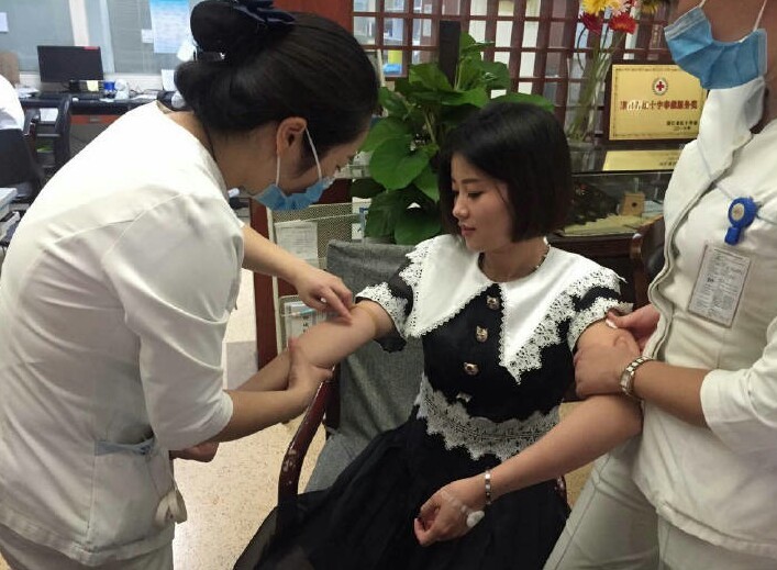 兩個手臂個打一針,一進血一出血,出血經過分離機震蕩留下需要的幹細胞,剩餘的慢慢輸送回我的體內。最艱難的不是打針和血被抽走,而是躺著不能翻身不能抬手臂,連鼻子嘴巴痒痒了,都要讓別人給幫忙,到最後結束之前,渾身麻痹的很崩潰。中途有各種領導探望,報社記者採訪,志願者的幫助和慰問。我開玩笑的說,躺著從下往上拍人是最醜的,今天把我一生最醜的照片都拍完了。