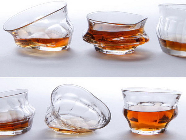 三不五時喜歡小酌幾杯的朋友,對於酒杯的形狀是否都不是挺在意的呢?畢竟重點不在杯子,在於杯子裡裝的酒,但是如果當你到了一家店點了一杯酒之後發現,杯子詭異的形狀讓你不得不多注意他一眼,甚至會懷疑怎麼自己還沒喝就眼花了;不過如果你看到以下這樣的杯子時,請不要懷疑自己出現了幻覺,這是由倫敦東部一個小工作室打造的"帶著醉意的酒杯",每個杯子扭曲的弧度方向不同也沒有規則性,看起來就像是喝醉酒的人走起路來歪七扭八的樣子。
