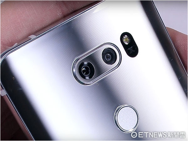 ▲ LG V30 的鏡頭,雙鏡頭中的 1,600 萬像素主鏡頭具備光學防手震,1,300 萬像素廣角鏡頭則無。(圖/翻攝自YouTube)