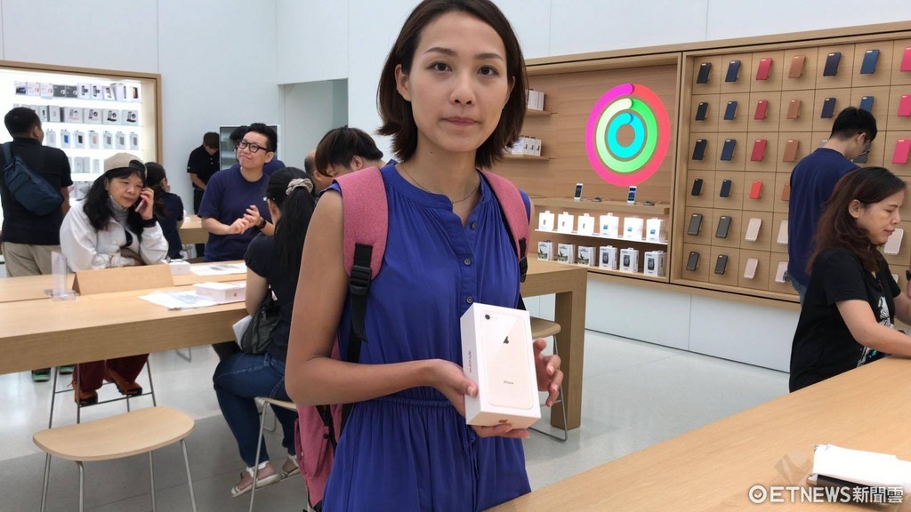 一名首購用戶顧小姐選購的是 iPhone 8 金色款,她相當滿足地告訴記者,台北101直營門市的商店很寬敞、人很友善,周邊服務很好,整個拿到手機的過程讓她感覺上非常 VIP。