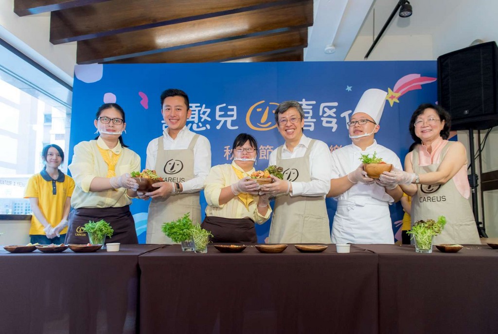 ▲陳建仁副總統與新竹市長林智堅陪同憨兒攜手製作中秋特餐。