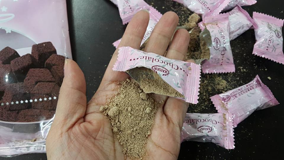 ▲知名廠牌的巧克力拆開後卻變成沙。(圖/翻攝自爆料公社)