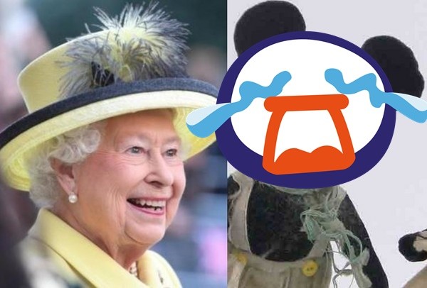 ▲ 英國女王的兒時玩具中,「奸笑的米奇米妮」成為注目焦點。(左圖/路透社)(右圖/翻攝自推特/ @Independent)
